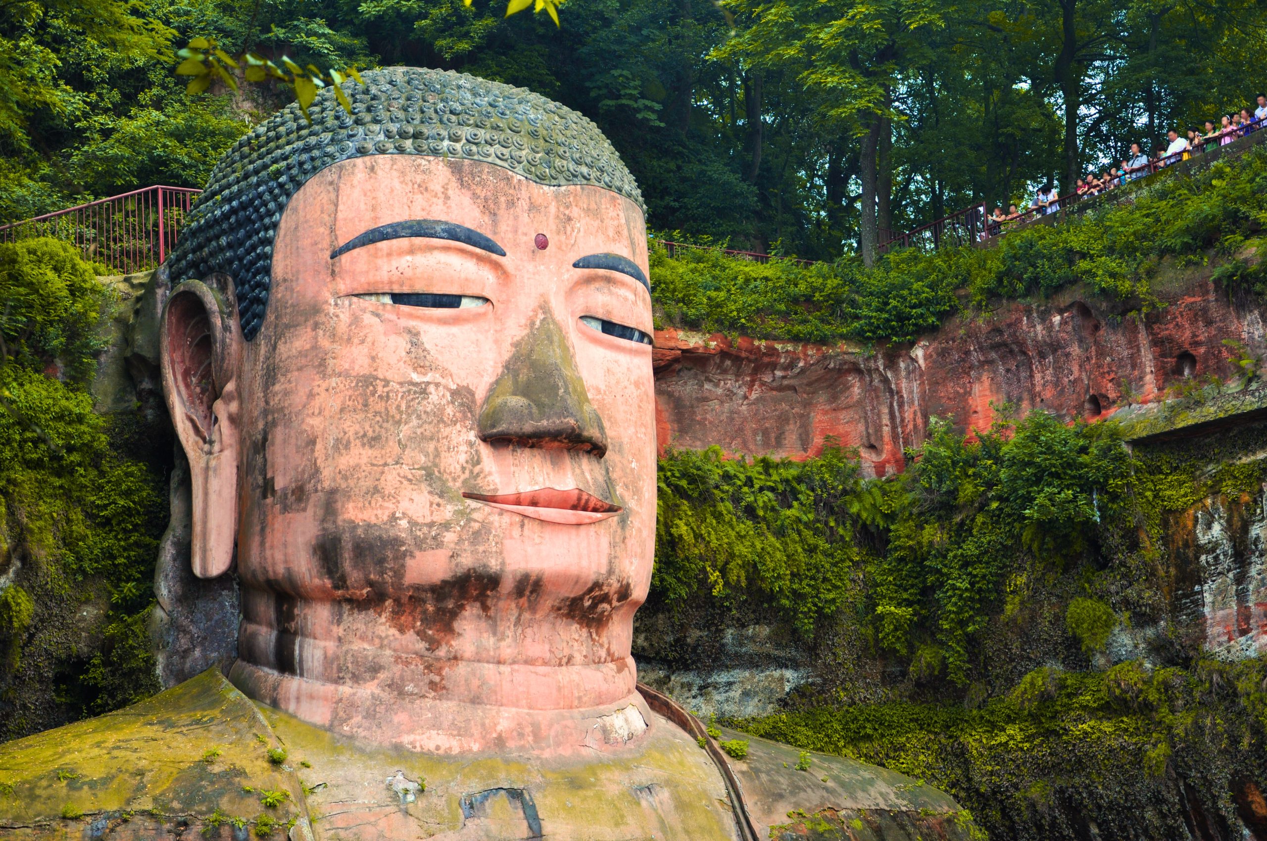de barco. A escultura do Buda, esculpida em uma rocha ao longo de quase um século e inaugurada em