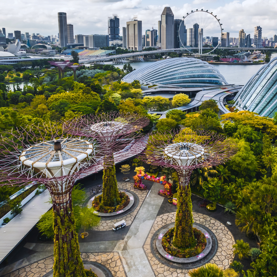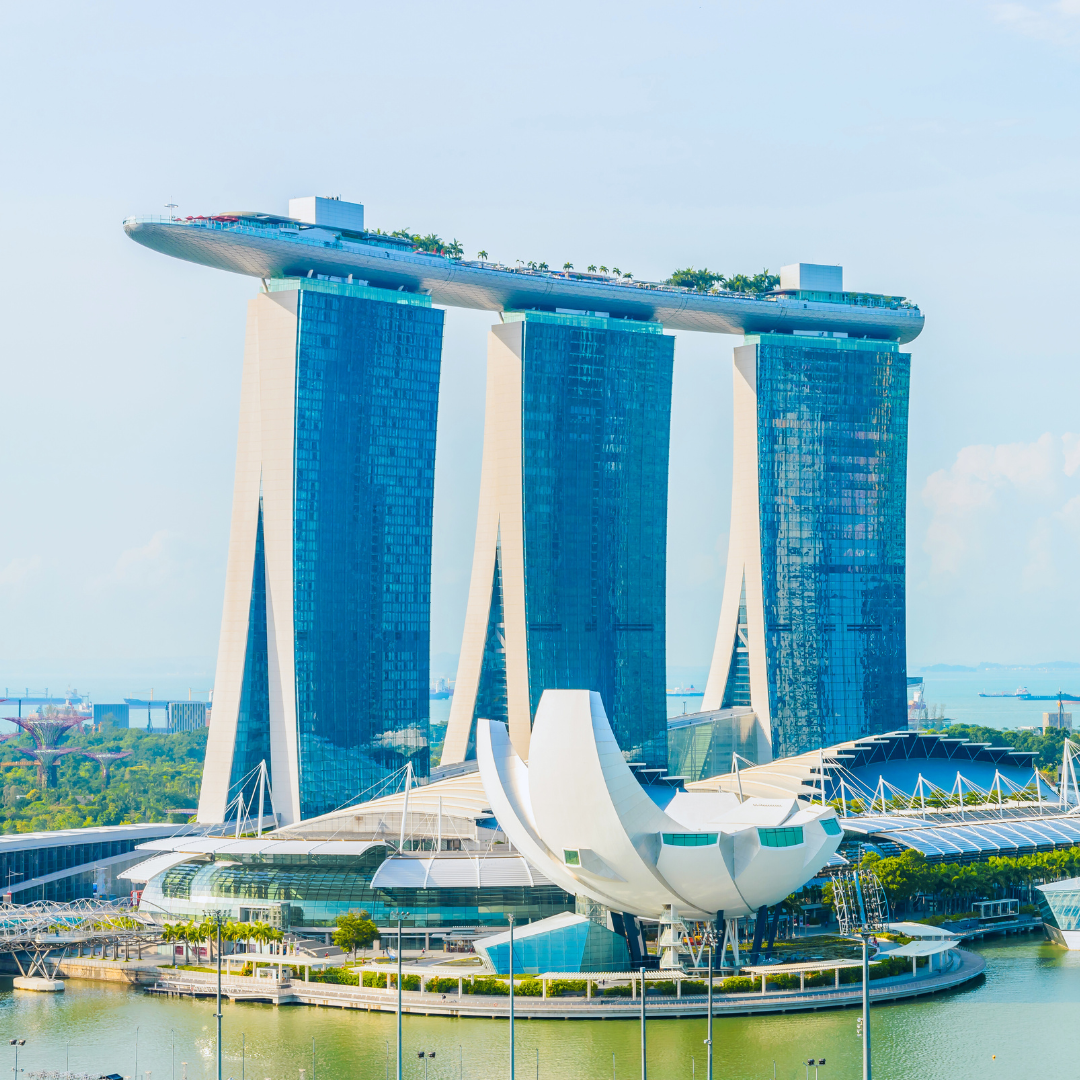 Chegada em Singapura prevista para às 08h45. Recepção e traslado ao hotel. Check-in antecipado garantido. Saída para almoço em restaurante local. Na sequência, saída para passeio ao Parque Merlione subida ao observatório Sky Park no topo do hotel Marina Bay Sands para ter a melhor vista da cidade.