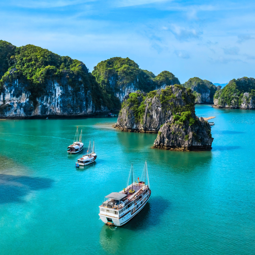 Traslados e passeios privativos com guia local em espanhol ou português, exceto a bordo do cruzeiro na Baía de Halong, onde não é permitido o acesso do guialocal (Os passageiros serão atendidos pela tripulação do barco em inglês);