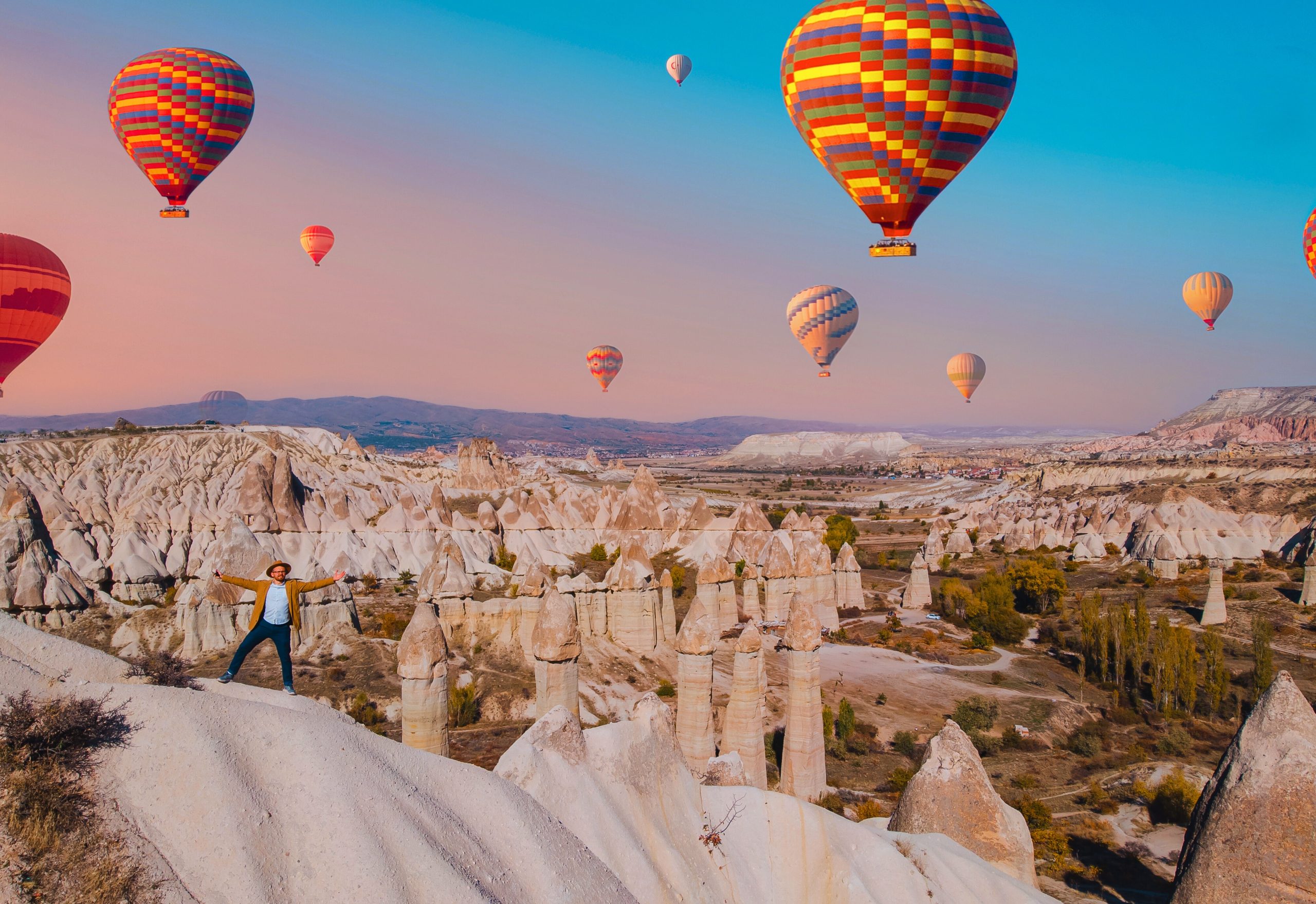 Bem cedo, saída para realizar um passeio de balão (se houver condição climática favorável) para sobrevoar as centenas de chaminés de fadas, trata-se de uma das paisagens mais conhecidas da Turquia. Retorno ao hotel para café da manhã e, na sequência saída para passeio de dia inteiro pela Capadócia, visitando o Museu ao Ar Livre de Goreme, vales da Capadócia, cidade subterrânea, loja de carpetes e loja de pedras preciosas. À noite, saída para uma Noite Turca em Caverna.
